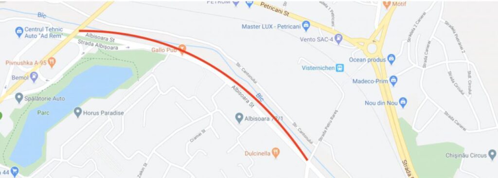 Primăria Municipiului Chișinău informează că duminică, 19 octombrie 2025, orele 06:00-17:00, va fi suspendat traficul rutier pe str. Albișoara, pe tronsonul cuprins între str. Mihai Viteazul (de la pod) și str. Petru Rareș.